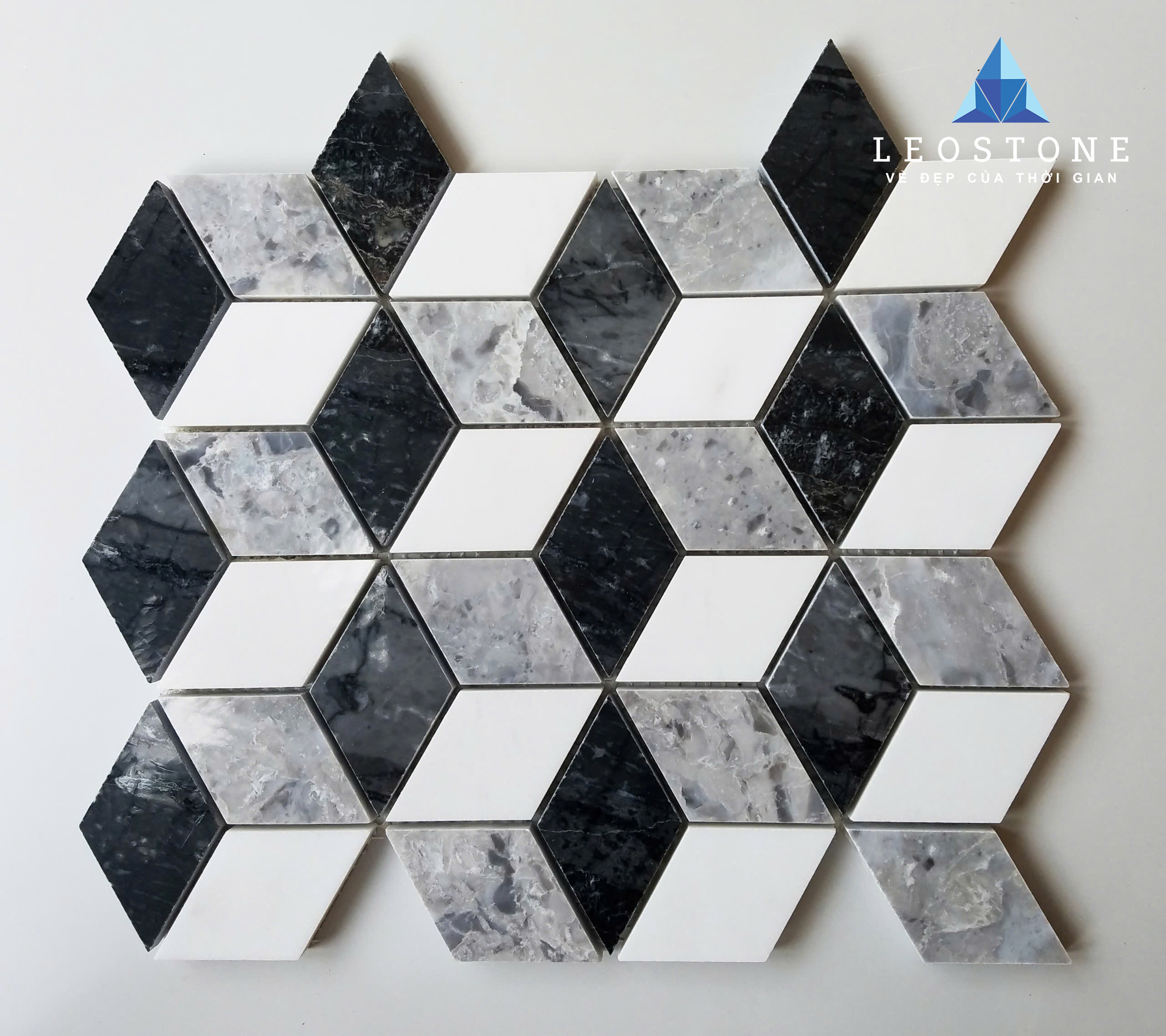 Đá Mosaic 3D Thoi Trắng Sữa, Đen, Ghi