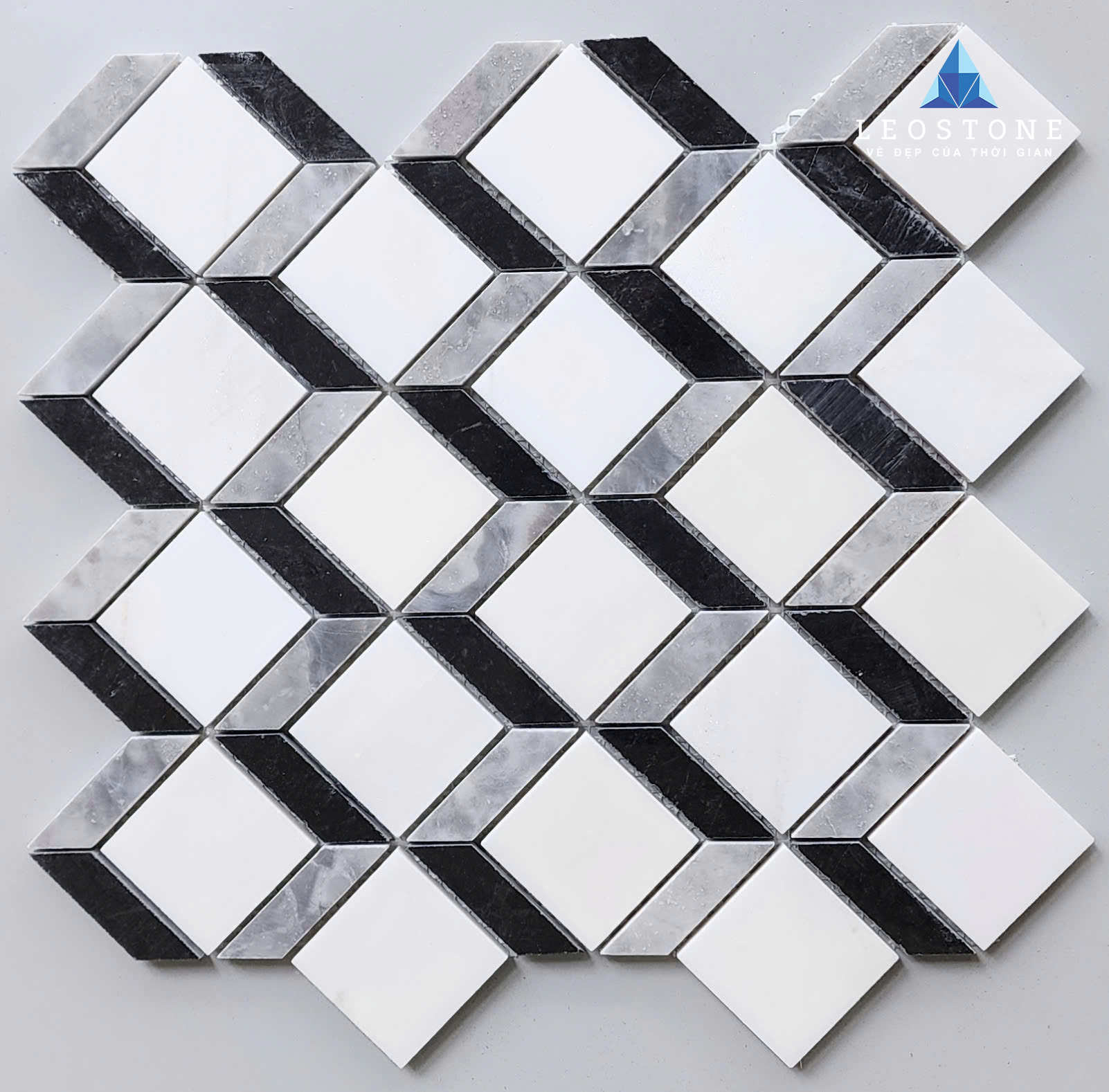 ĐÁ MOSAIC 3D VUÔNG TRẮNG MUỐI, ĐEN, GHI