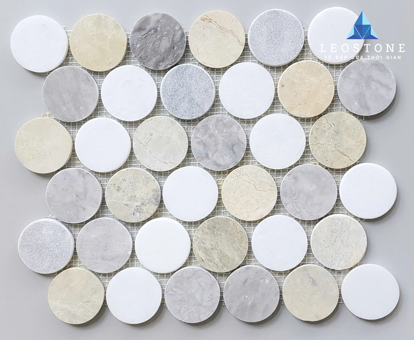 ĐÁ MOSAIC BI TRÒN PHỐI TRẮNG - BE - XÁM