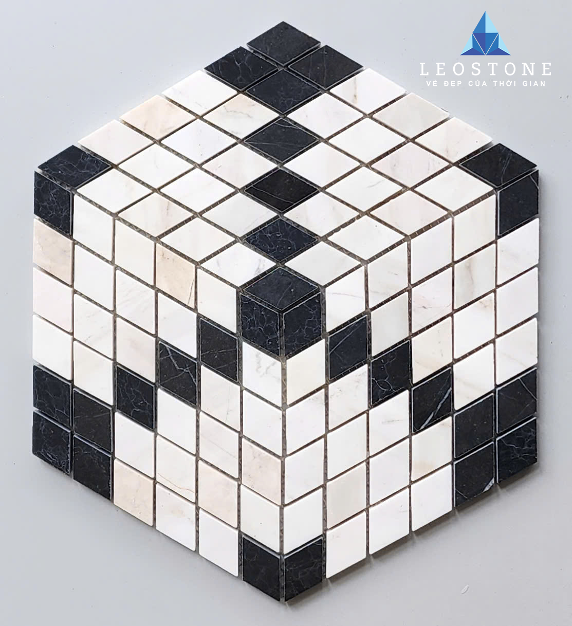 ĐÁ MOSAIC HÌNH HỌC PHỐI BE - ĐEN