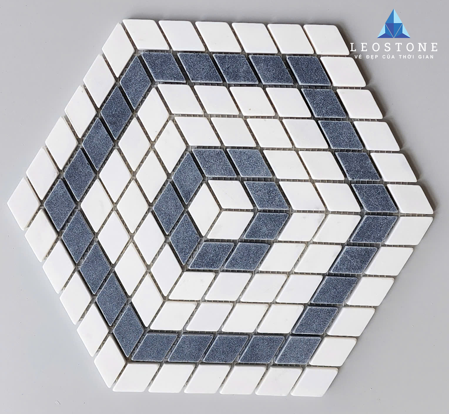 ĐÁ MOSAIC HÌNH KIM CƯƠNG PHỐI TRẮNG - XANH
