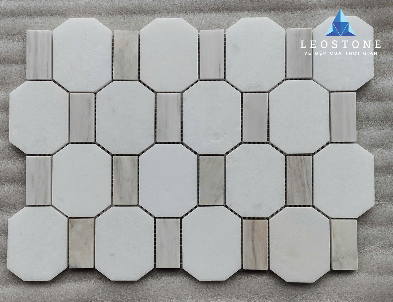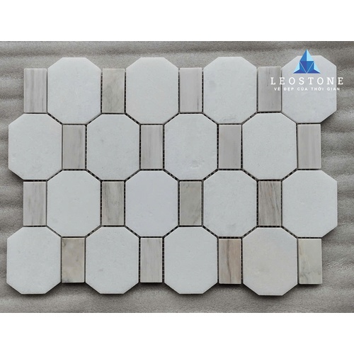 ĐÁ MOSAIC LỤC GIÁC MIX Ô CHỮ NHẬT BE SỮA