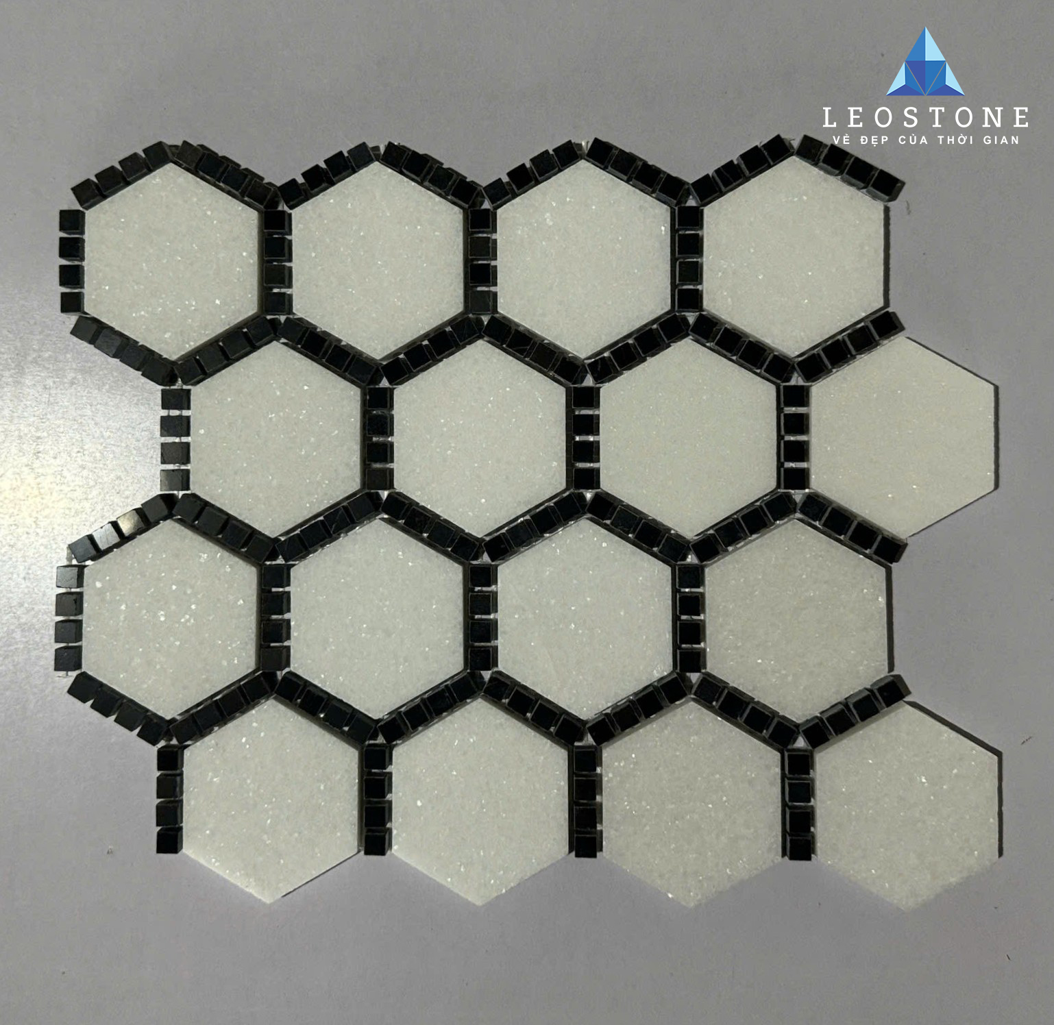 ĐÁ MOSAIC LỤC GIÁC PHỐI VIỀN ĐEN