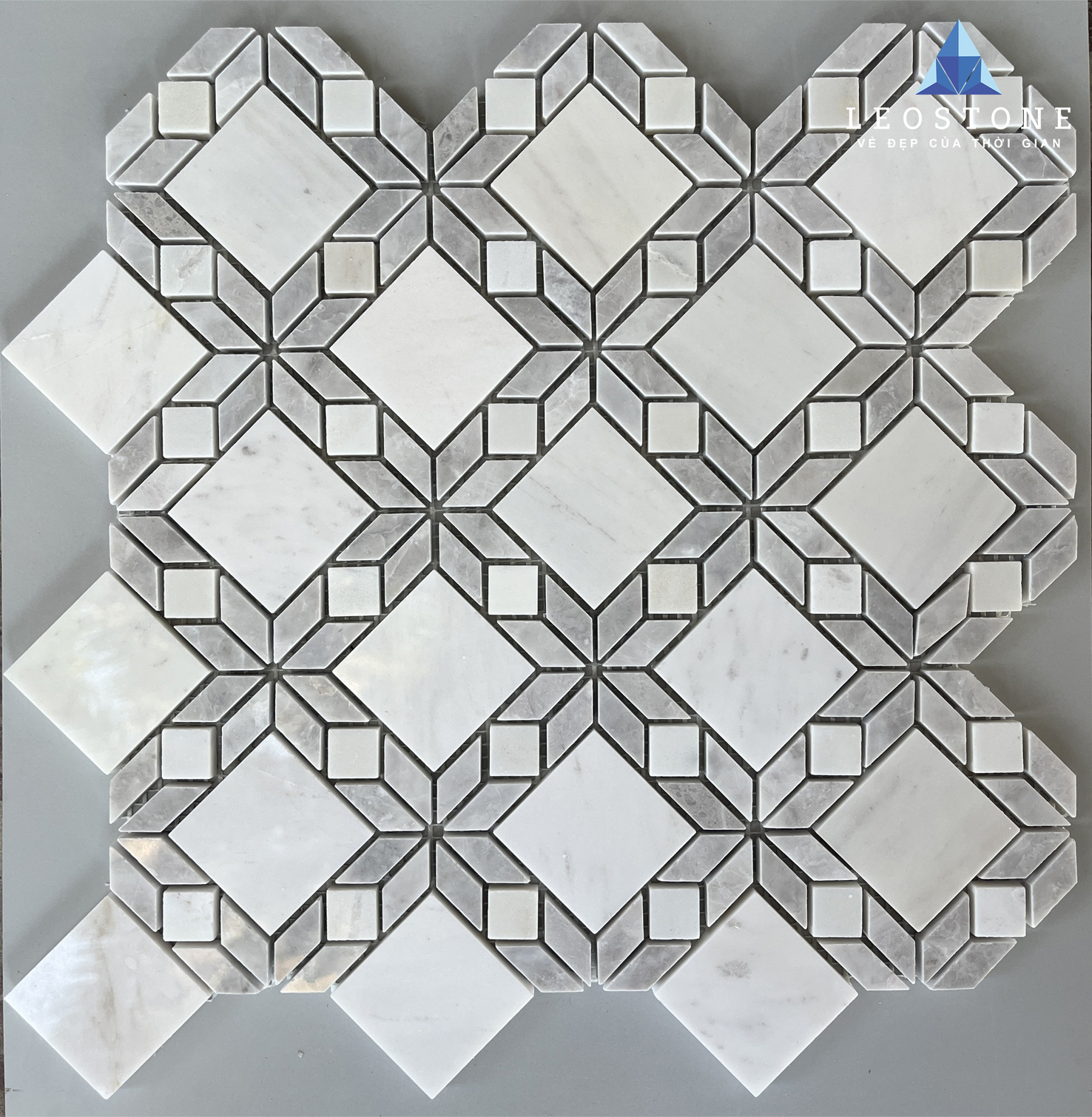 ĐÁ MOSAIC MARBLE TRẮNG GHI HỌA TIẾT KIM CƯƠNG