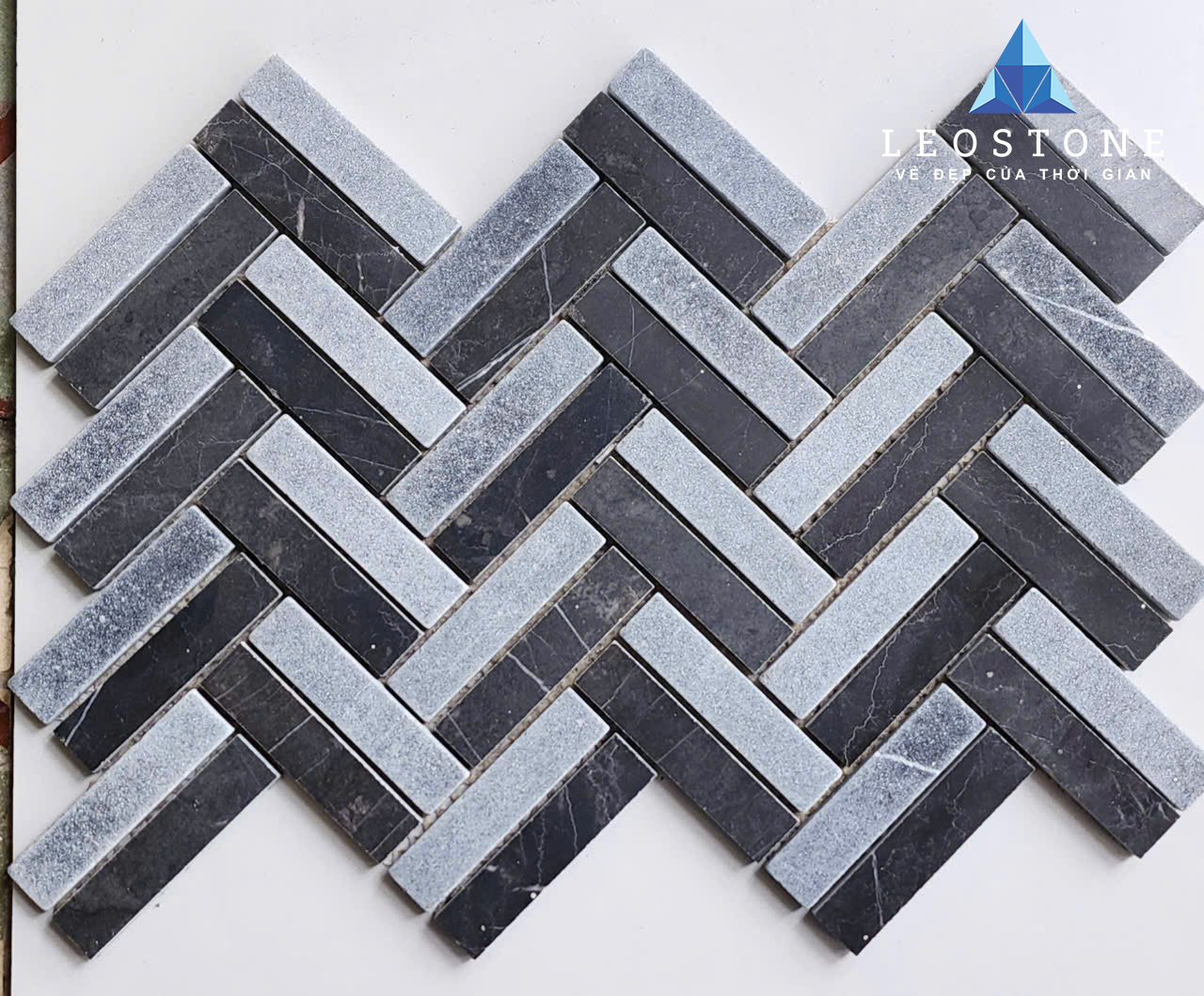 ĐÁ MOSAIC XƯƠNG CÁ PHỐI XÁM ĐEN